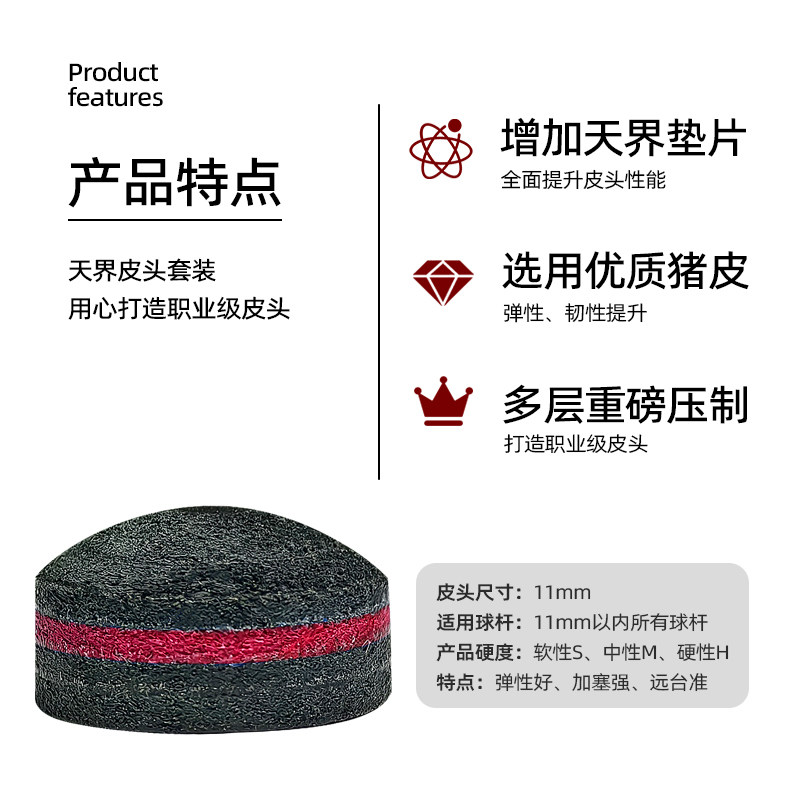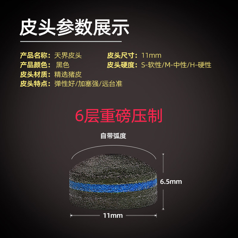 台球杆皮头斯诺克小头杆枪头专业美式 加塞球杆皮头黑八杆多层高级