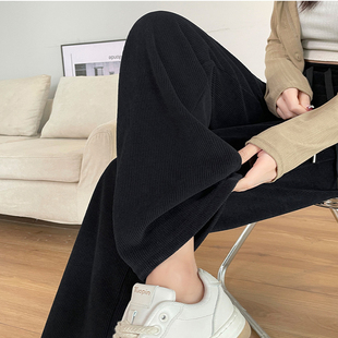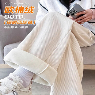 秋冬季 女2025新款 窄版 黑色休闲冬季 子 大码 加绒裤 胖mm欧棉绒阔腿裤