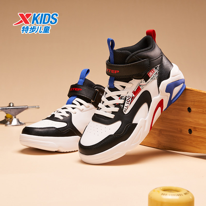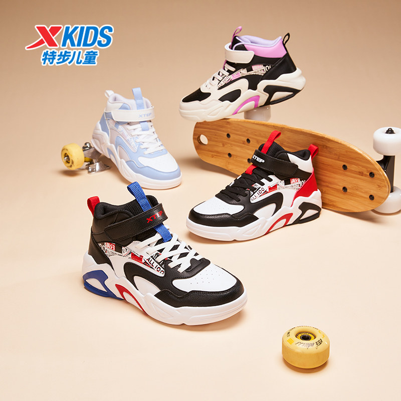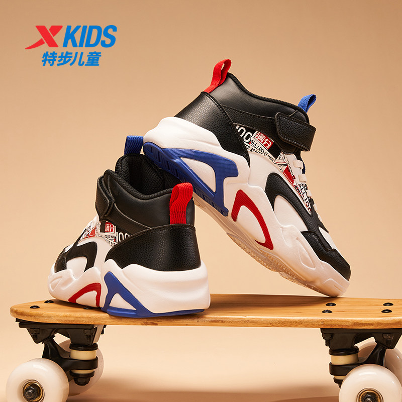 男鞋 子青少年休闲高帮运动鞋 冬季 皮面厚底鞋 新款 融雪鸿星尔克板鞋