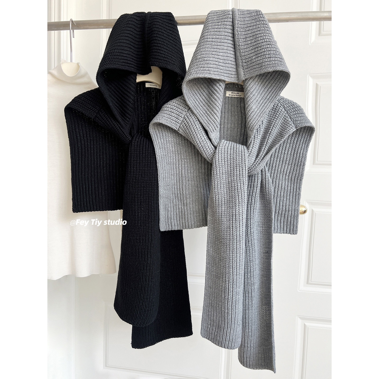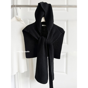 feytiy 秋冬保暖百搭外搭坎肩 重磅毛线设计感时髦针织连帽披肩女