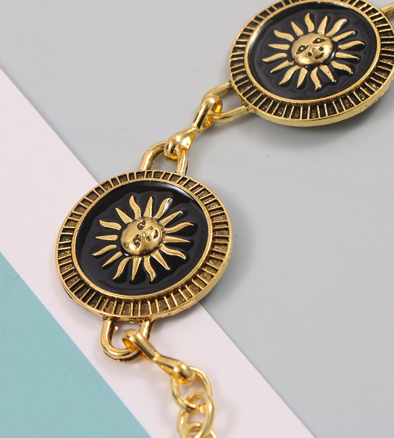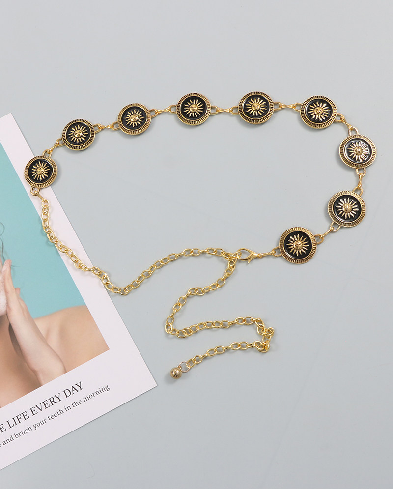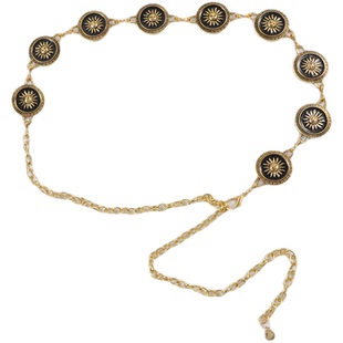 欧美复古新款 合金百搭做旧腰链简约太阳图案金属雕刻性感腰带女潮
