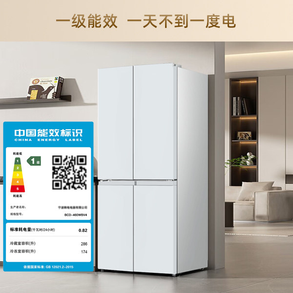海尔冰箱405L一级能效十字四对开门家用无霜官方旗舰店 换新补贴