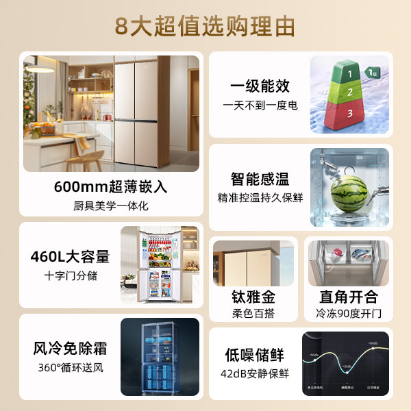 海尔小红花500L十字对开四门超薄一级能效风冷无霜家用冰箱 新品