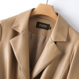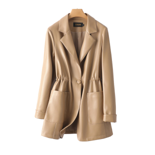 皮衣女真皮西装 绵羊皮外套 领中长一粒扣海宁单皮西服2026春秋新款