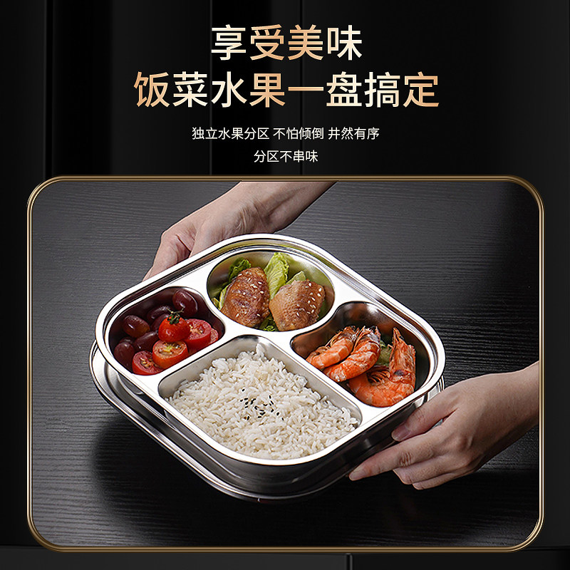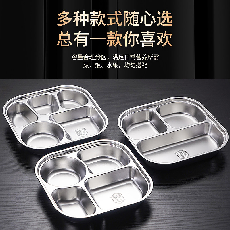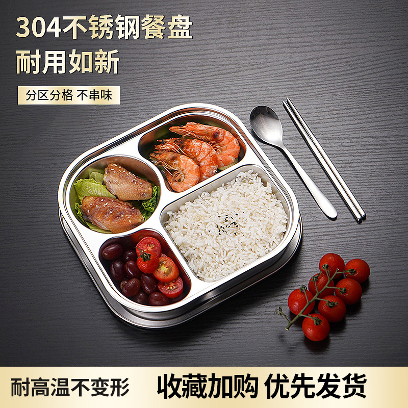 304餐盘分格不锈钢快餐盘成人学生儿童幼儿园食堂餐具饭盘家用