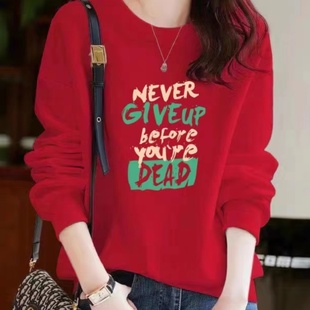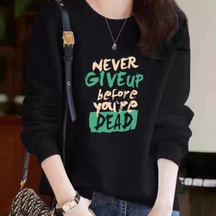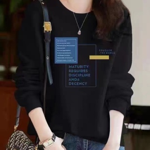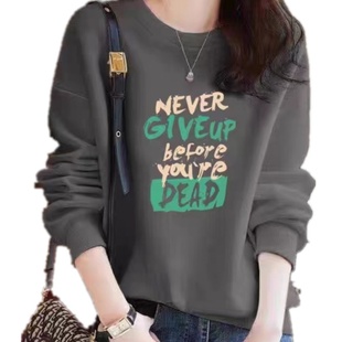宽松长袖 2025年春秋新款 字母印花上衣女 加绒卫衣女款 无帽套头薄款