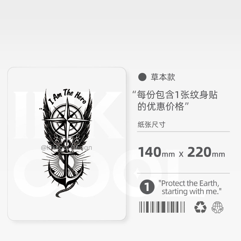 INKCOOL 领航锚纹身贴创意花臂潮流防水持久草本纹身贴IK095
