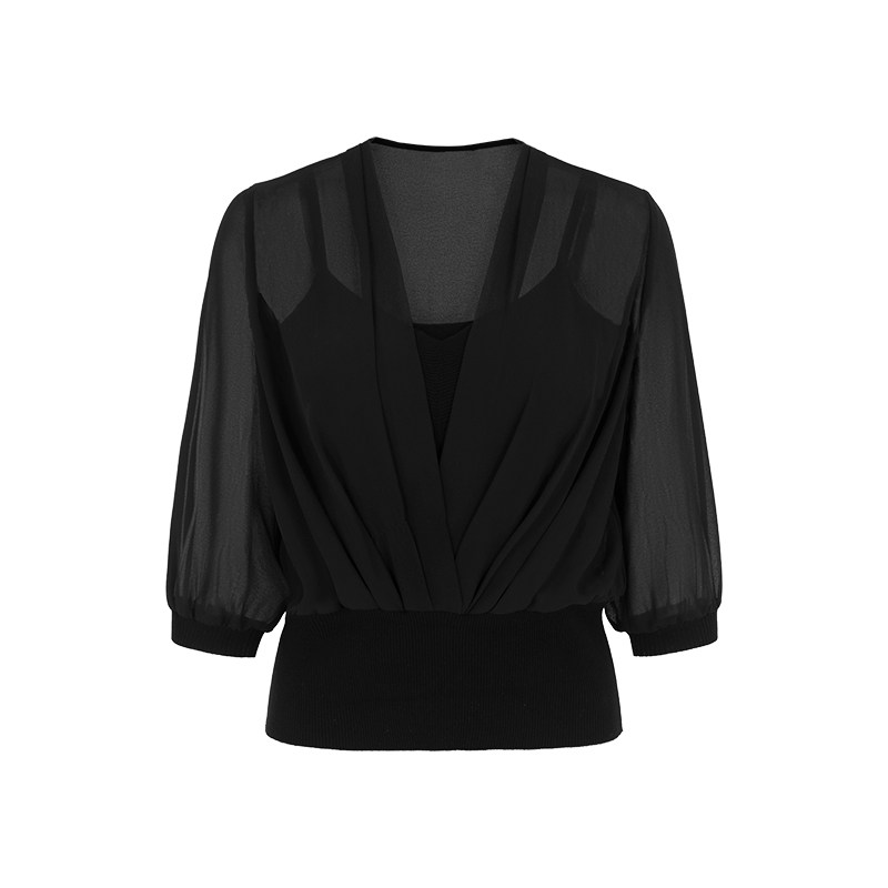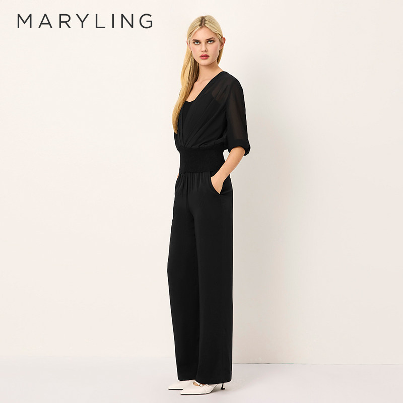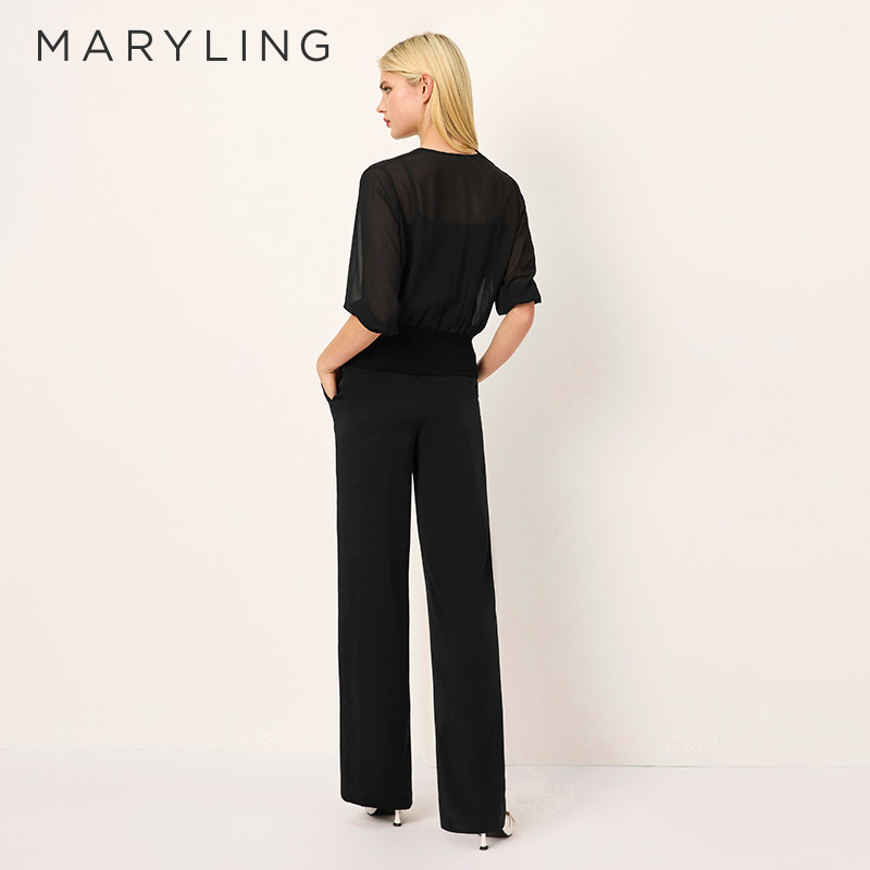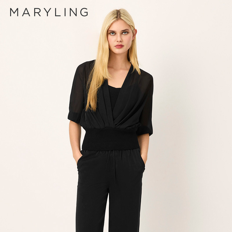 上衣A1FCW26620 黑色V领桑蚕丝中袖 MARYLING玛俪琳2025夏季 新品