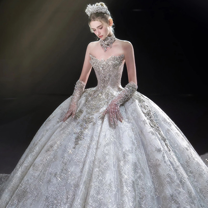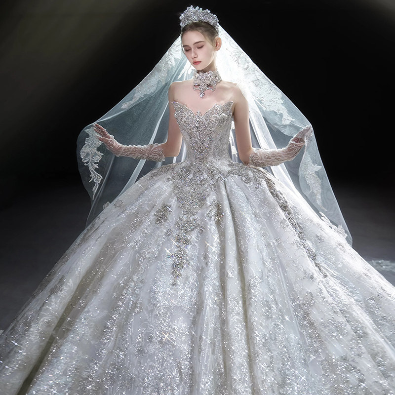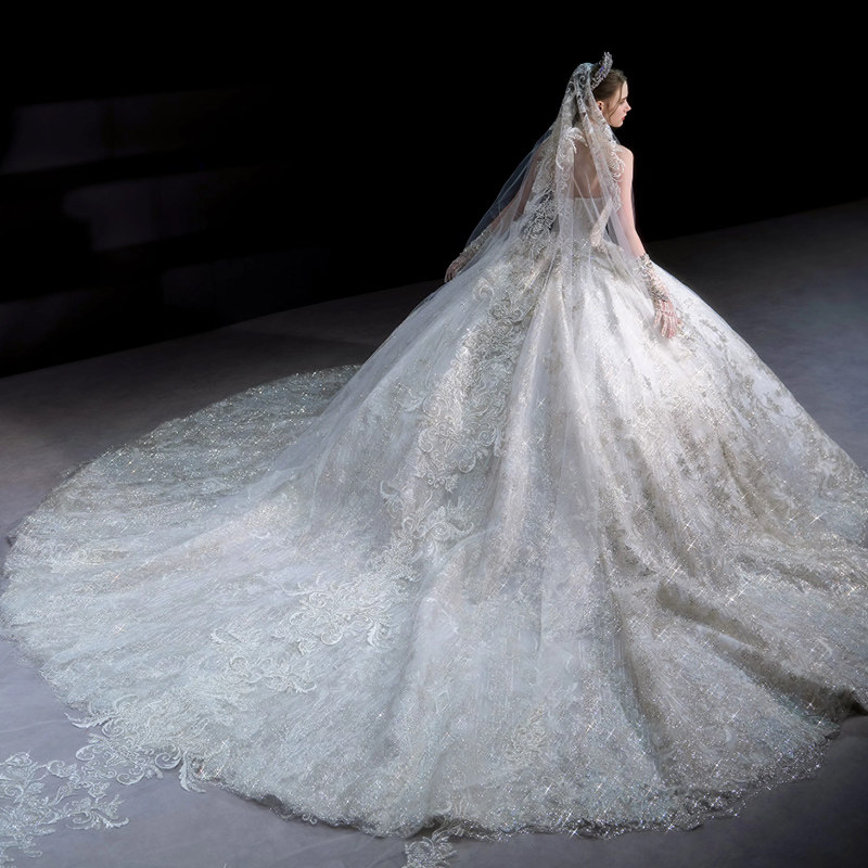 抹胸重工拖尾宫廷婚纱新娘结婚主纱大纱女 2025新款 缇莫公主