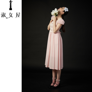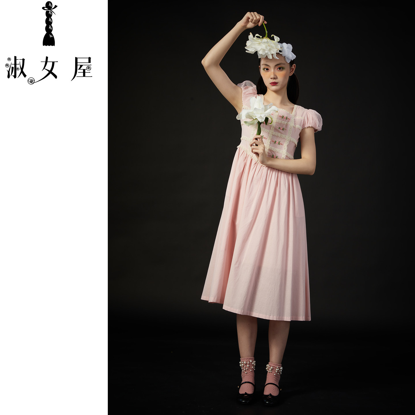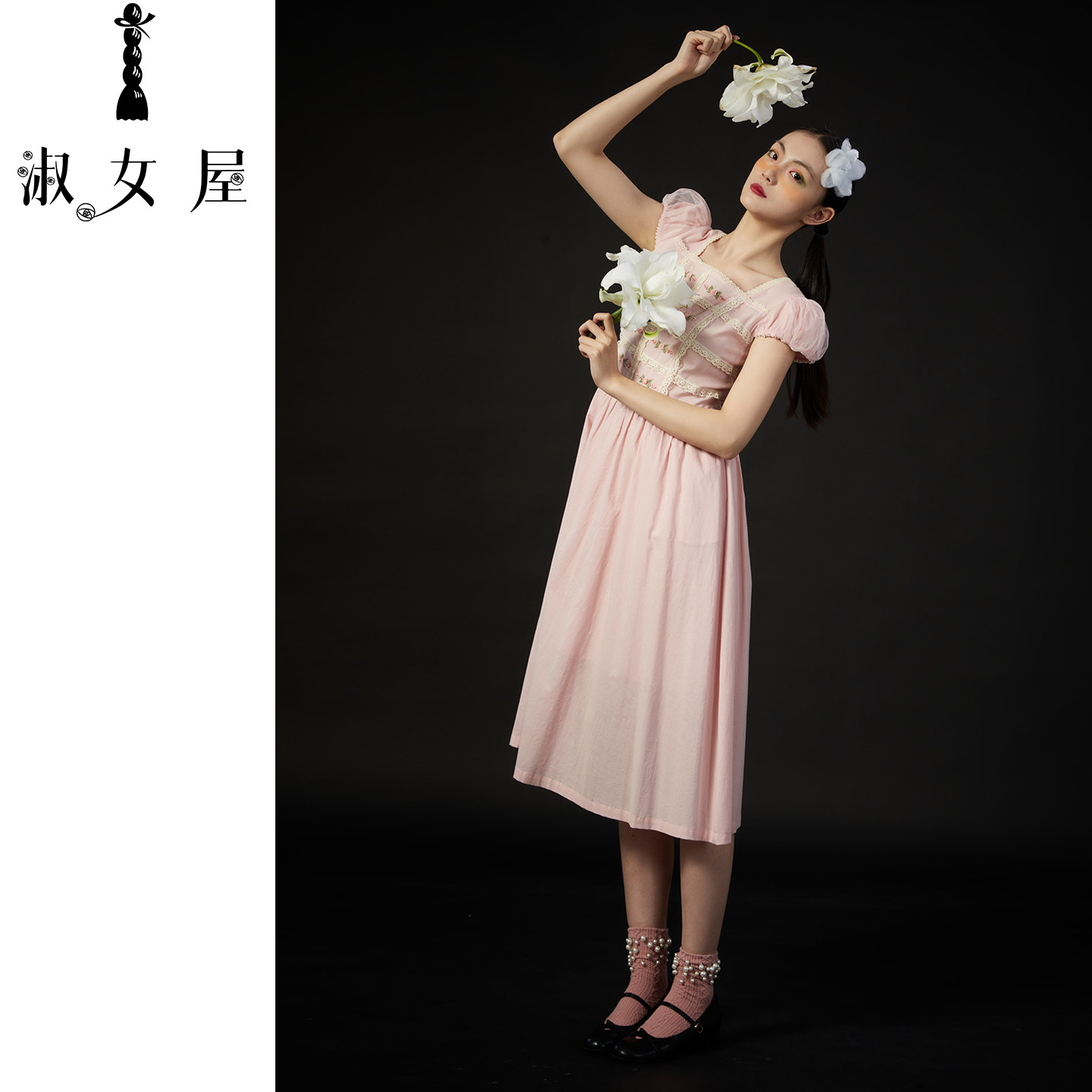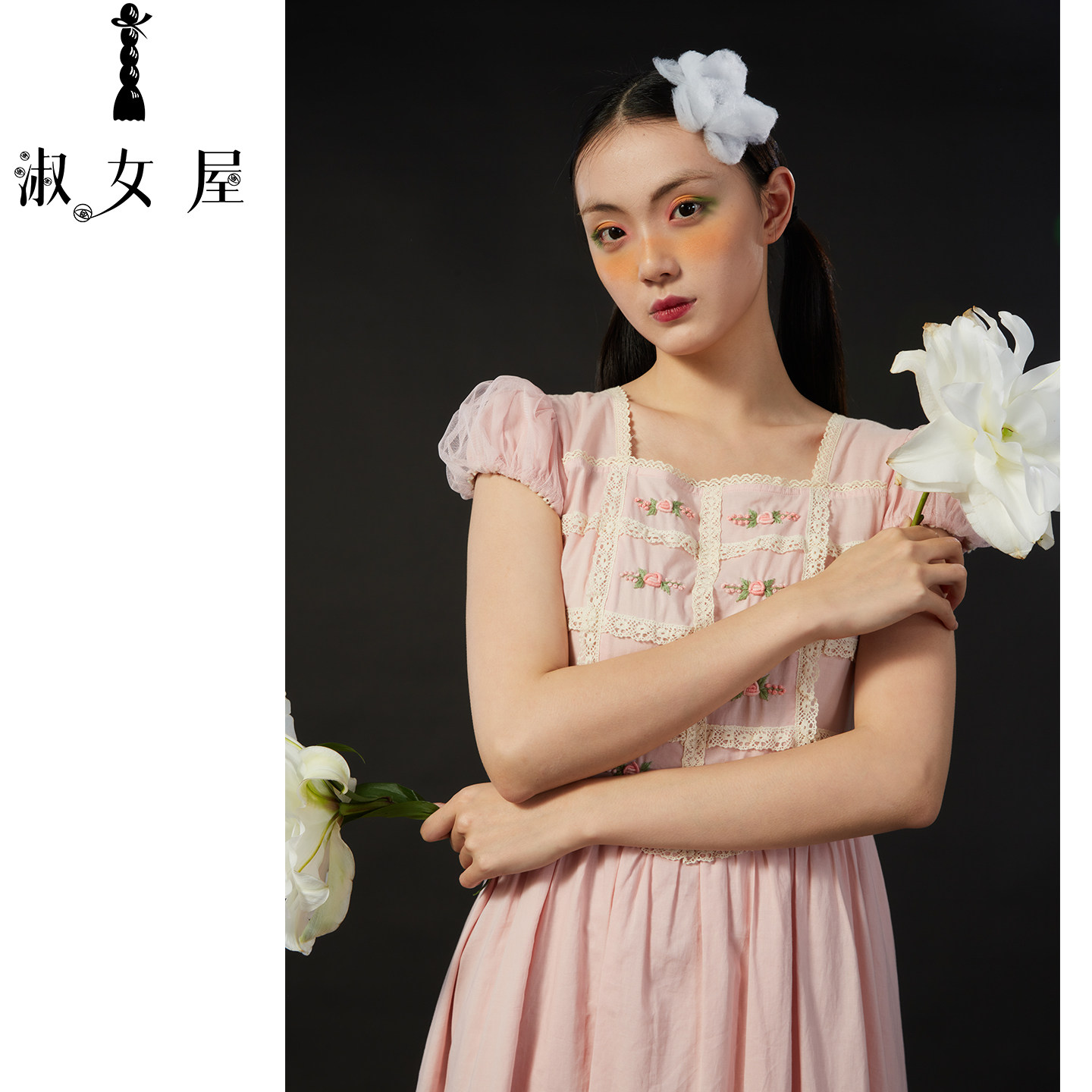 复古荷叶边连衣裙 粉色甜美立领刺绣蛋糕裙法式 艾丽丝2025秋季 新款