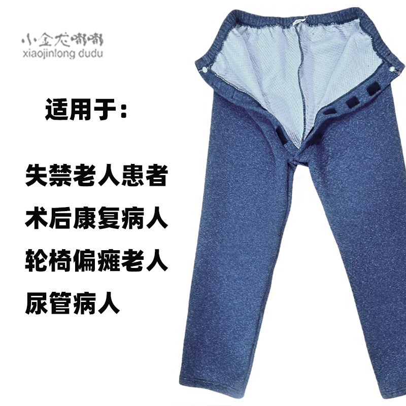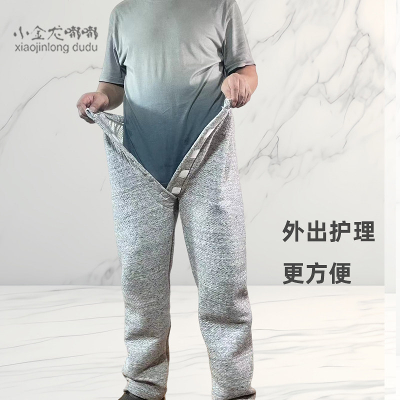 薄夹棉偏瘫半自理老人隐形前开裆小便春秋家居康复前开保暖外穿裤