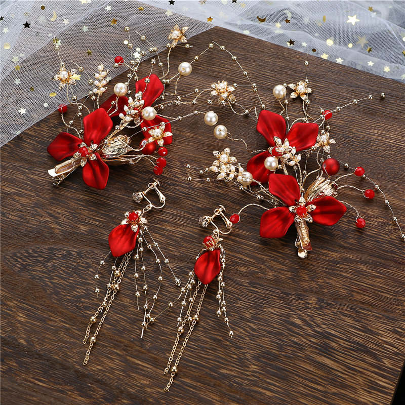 新娘头饰2020新款 超仙敬酒服森系礼服配饰 结q婚红色婚纱发饰中式