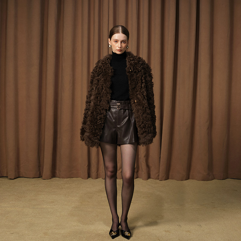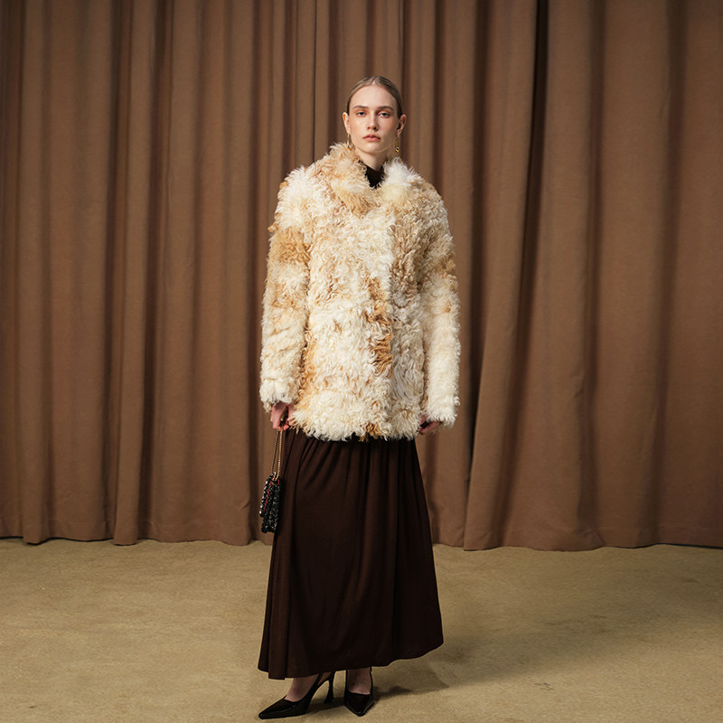 皮草外套 提格拉多羊圈毛皮毛一体中长款 DIANA VEVINA冬新款