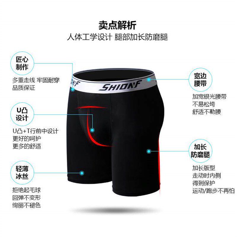速干冰丝平角裤 男款 男防摩擦 男加长跑步防磨档运动内裤 防磨腿内裤
