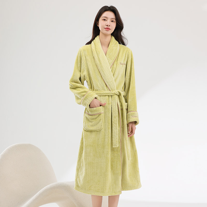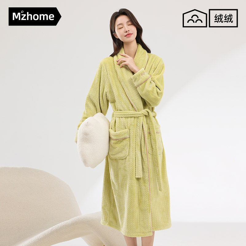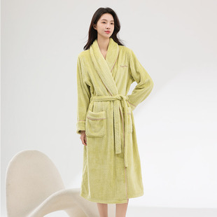 睡衣家居服 珊瑚绒浴袍男士 芬腾秋冬季 加厚法兰绒情侣睡袍女冬长款