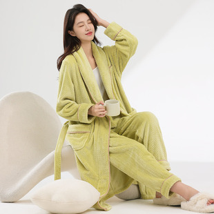 中长款 冬保暖睡衣家居服套装 睡袍毛绒浴袍加厚情侣款 三层加厚
