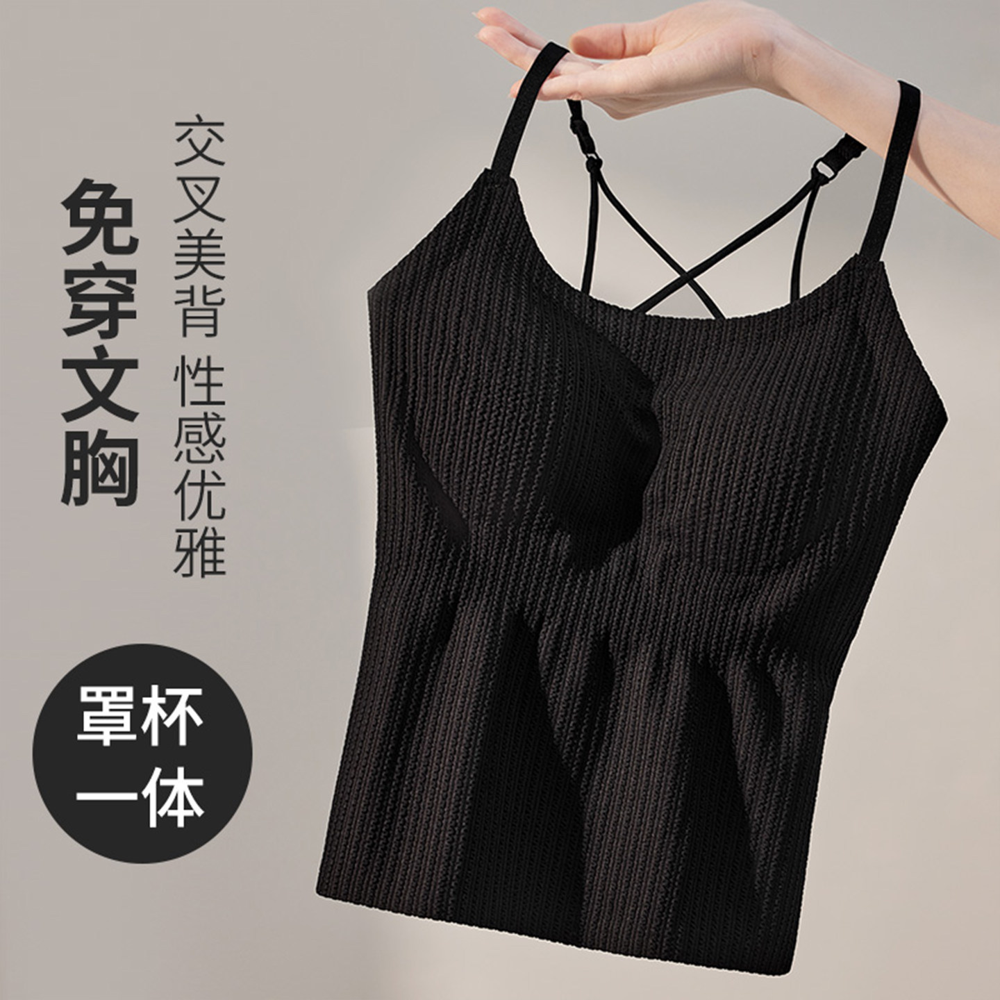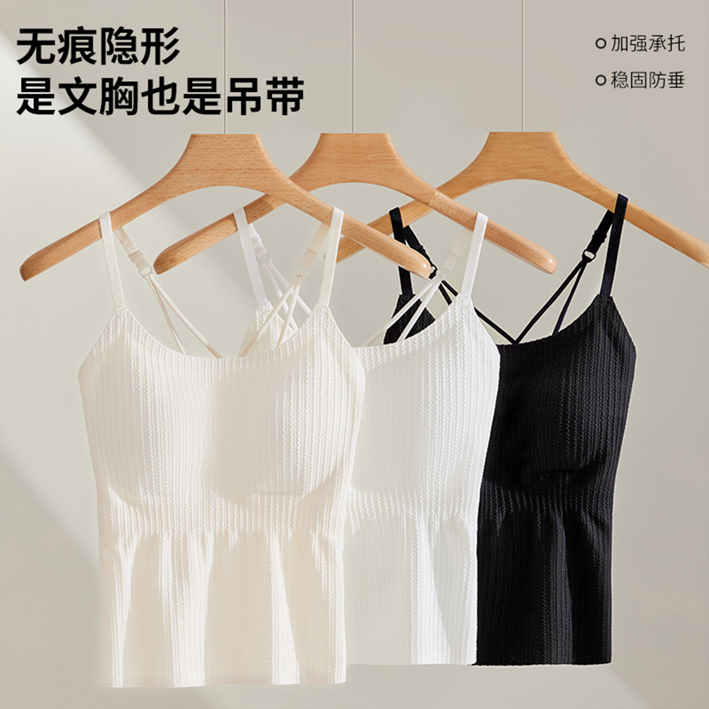 莱赛尔7A抗菌秋季 美背吊带女自带胸垫内搭外穿上衣文胸小背心 薄款