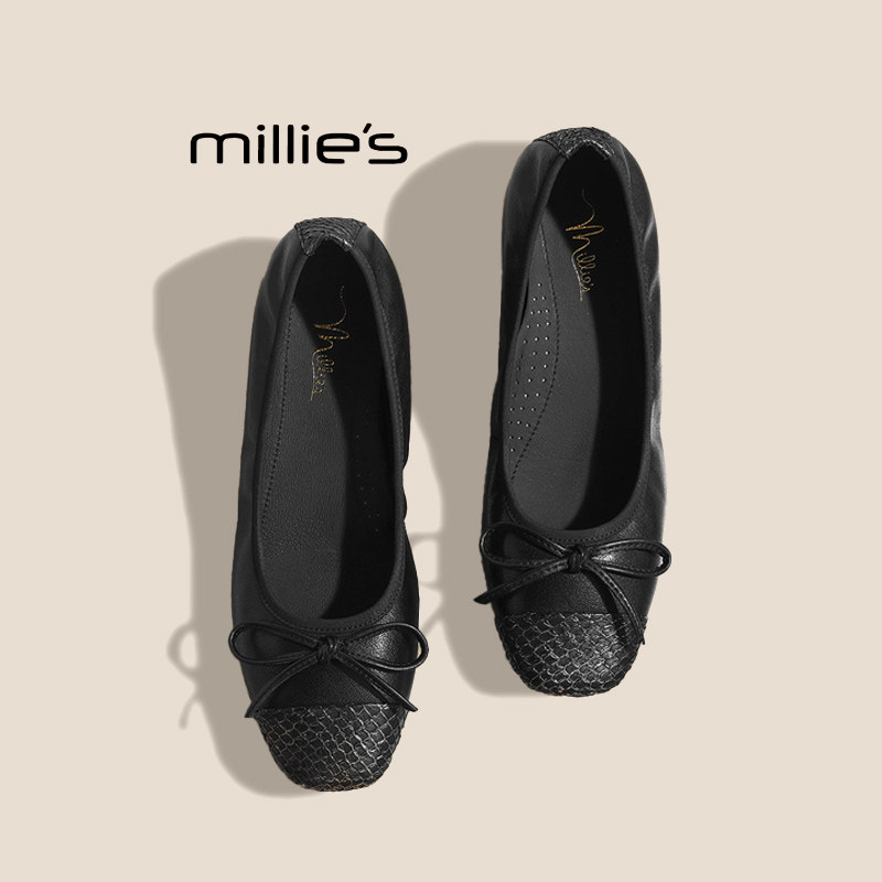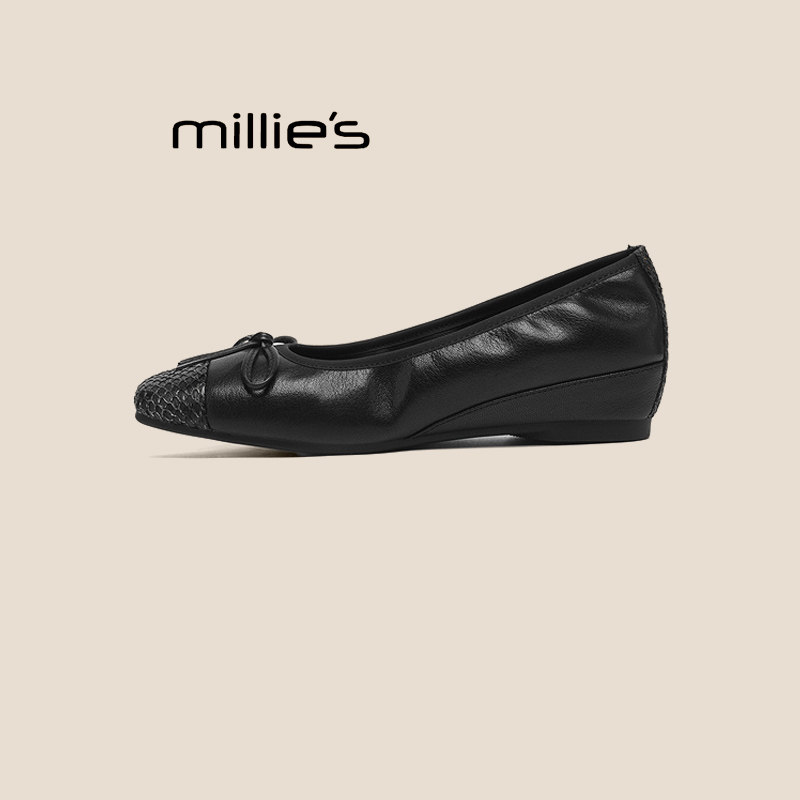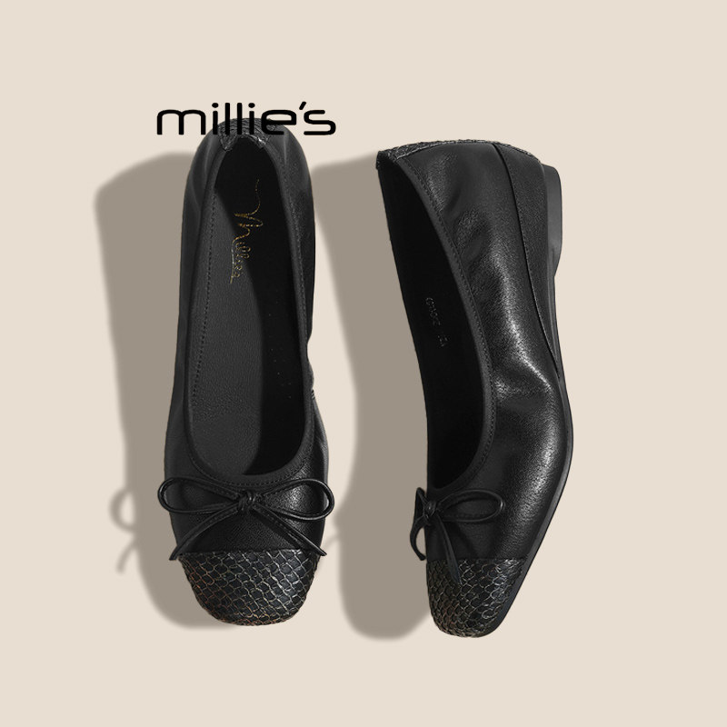 毛毛鞋 浅口平底温柔复古舒适奶奶鞋 秋冬新款 毛呢蝴蝶结加绒单鞋