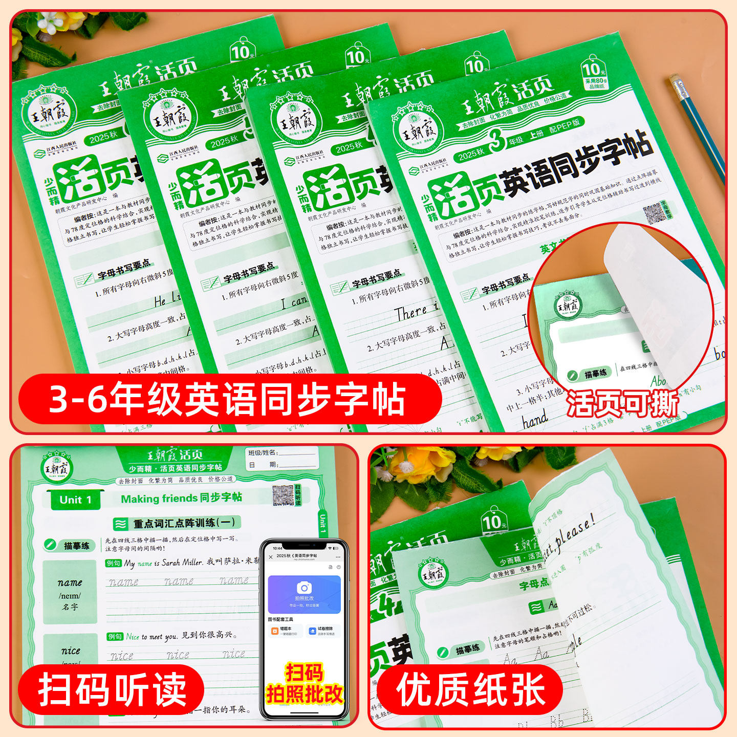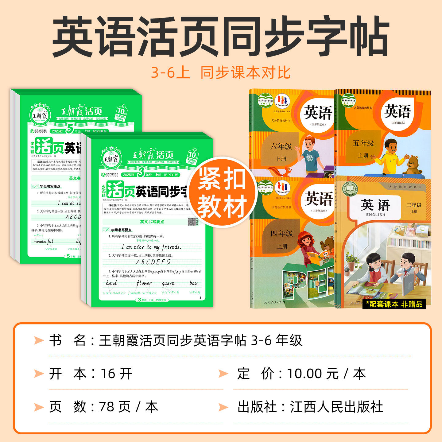 2025秋王朝霞活页英语同步字帖小学三年级四年级五年级六年级上册英语字帖衡水体小学生英语练字字帖字母单词短语句子练字人教版