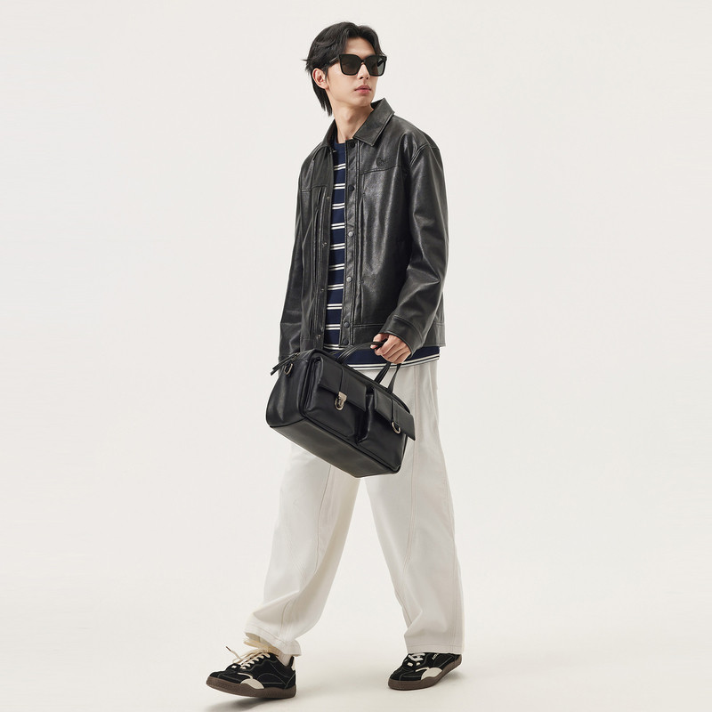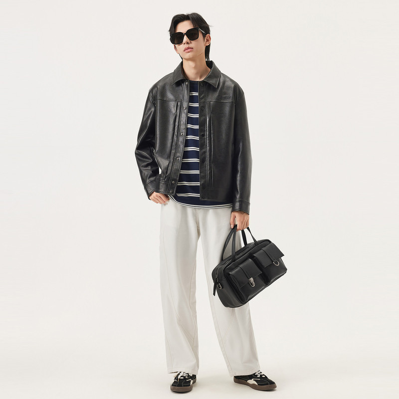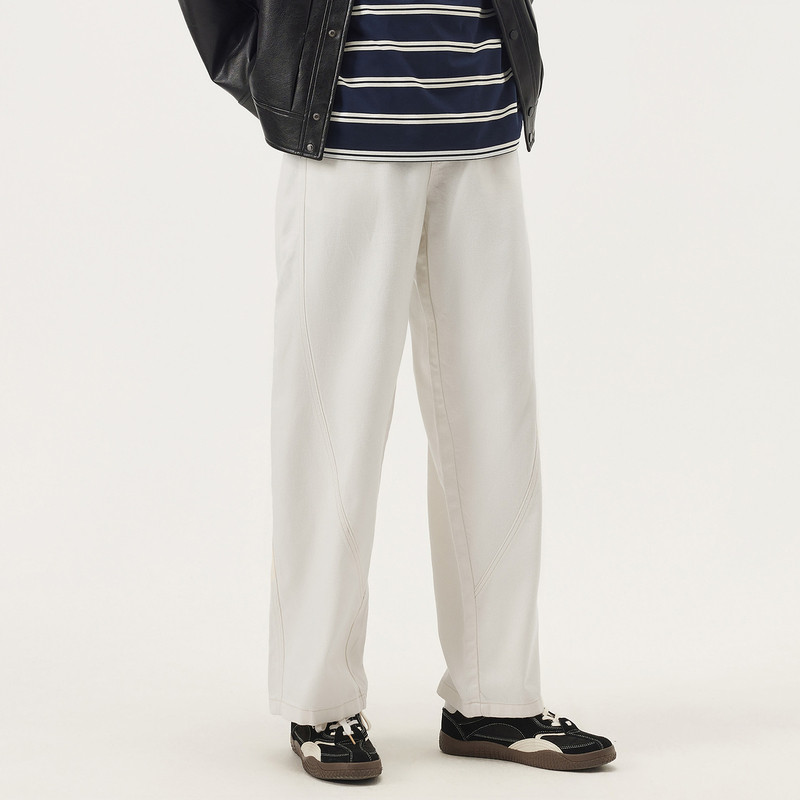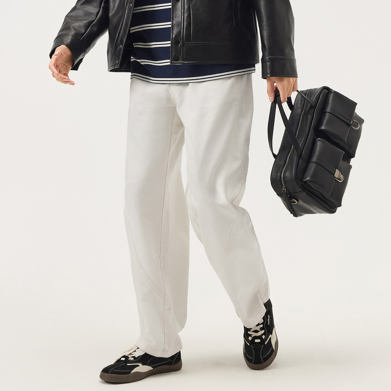 25秋新品 男裤 米白分割设计松紧腰宽松简约牛仔长裤 gxg.jeans男装