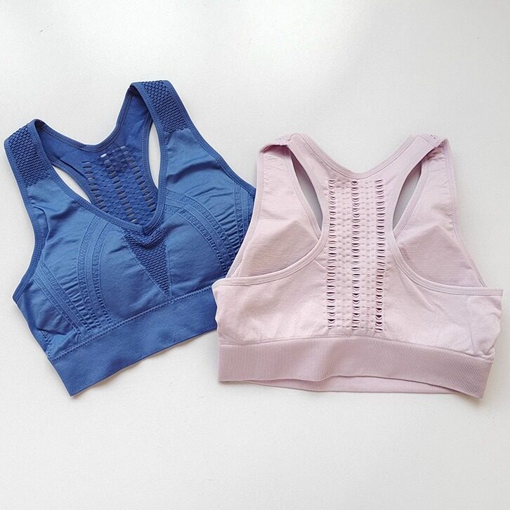 外贸单高强度女子运动速干聚拢内衣背心式 透气吸汗防震文胸 镂空款