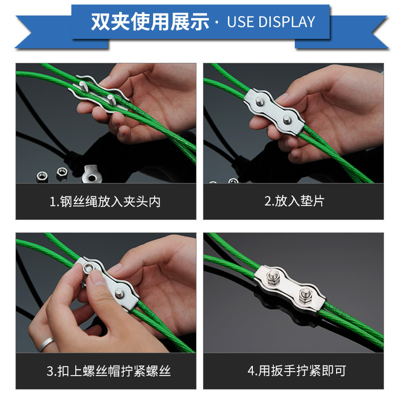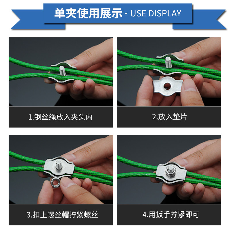 钢丝绳单夹 304不锈钢钢丝绳卡扣锁扣单卡双卡固定接头 双夹