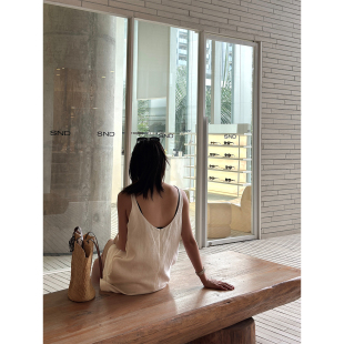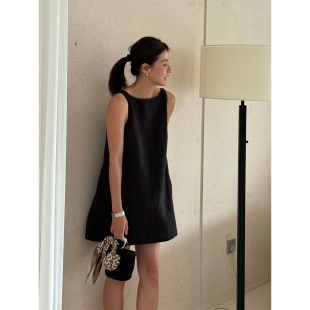 无袖 一字领亚麻2026年夏季 露背高腰宽松休闲小A连衣裙 法式 SOTHEA