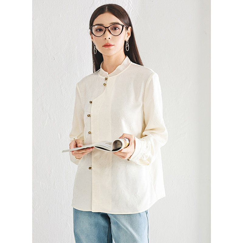 斜门襟立领衬衫 499西湖阁老 提花新中式 春装 外套076 兰