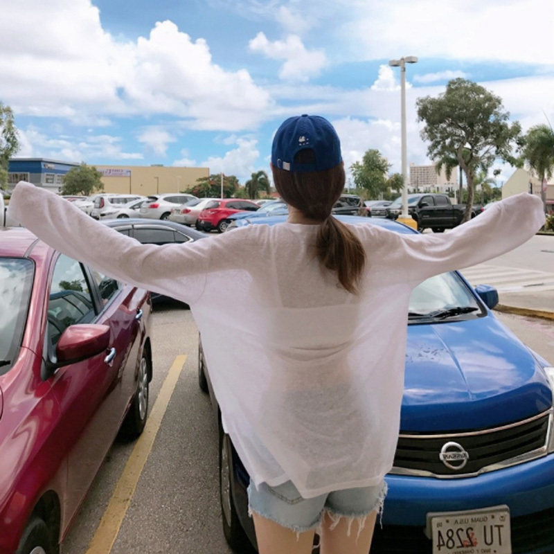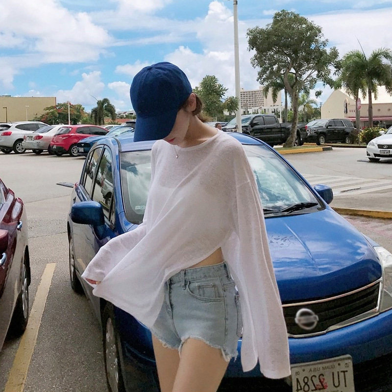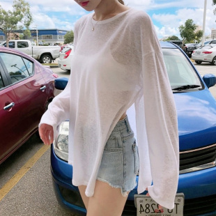 长袖 外搭罩衫 半透明防晒打底衫 ins宽松大码 遮肉上衣T恤女 夏季 薄款
