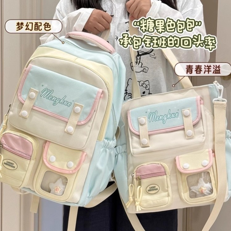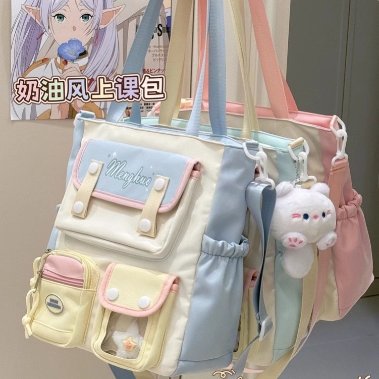 学院ins风撞色手提单肩包包女高颜值学生上课补习袋大容量斜挎包
