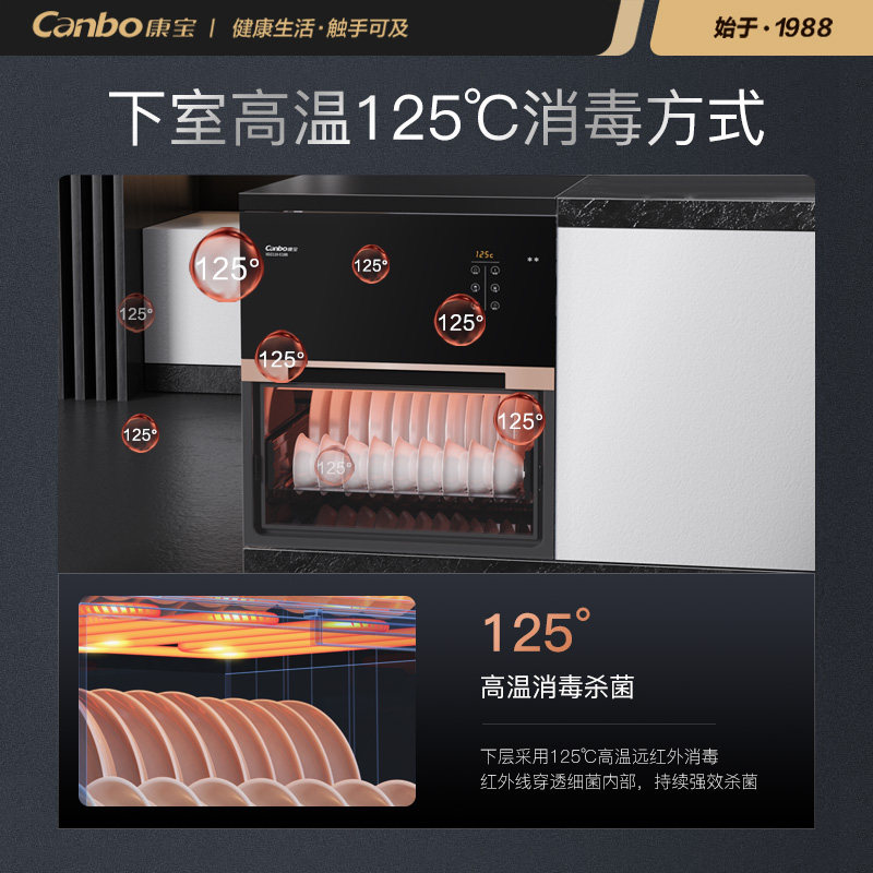 康宝消毒柜家用立式 无臭氧星级烘干一体高温商用 小型碗柜碗筷台式