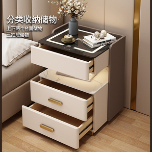 智能保险床头柜多功能实木轻奢卧室保险箱免安装 充电储物床边柜