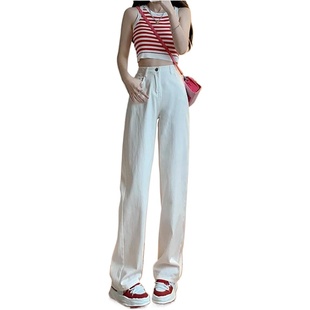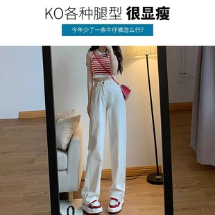 高腰垂感宽松显瘦百搭直筒裤 女春秋2025年新款 阔腿牛仔裤 白色窄版