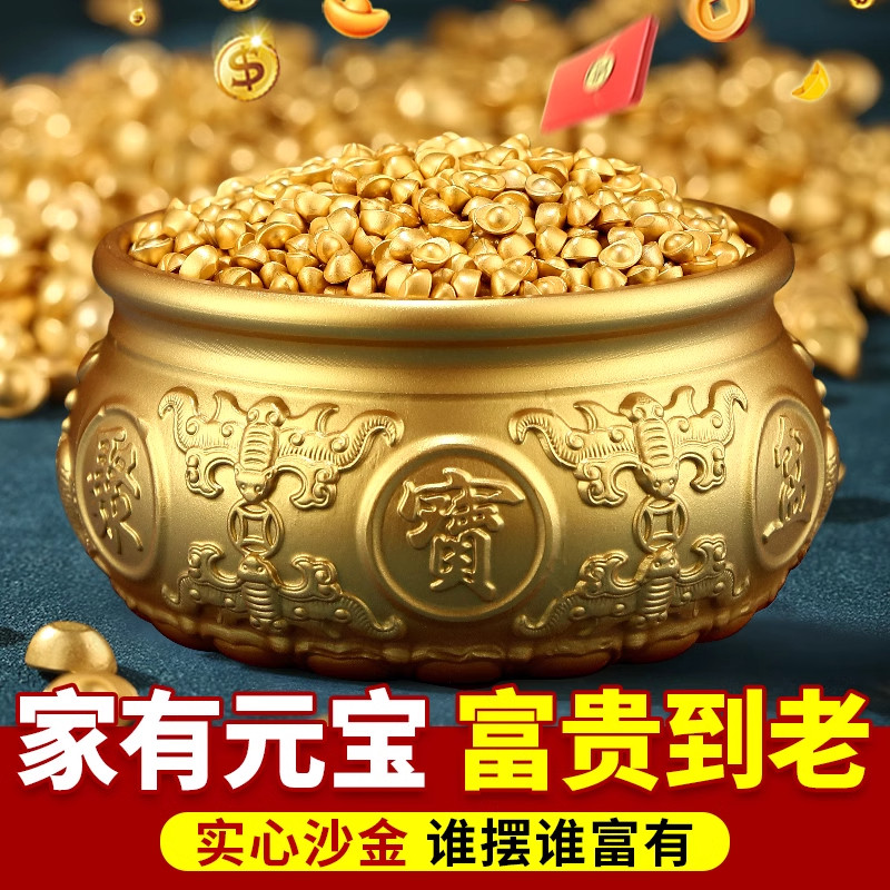 宝摆件迷你小元 宝沙金元 宝黄铜聚宝盆米缸礼品 宝摆件实心铜元 金元