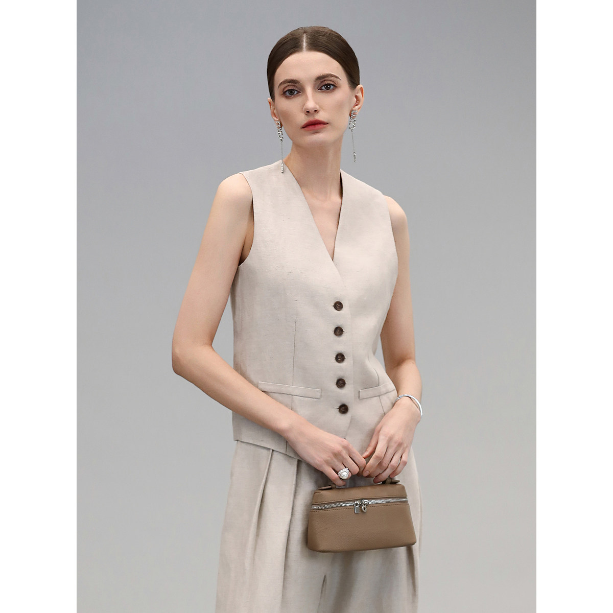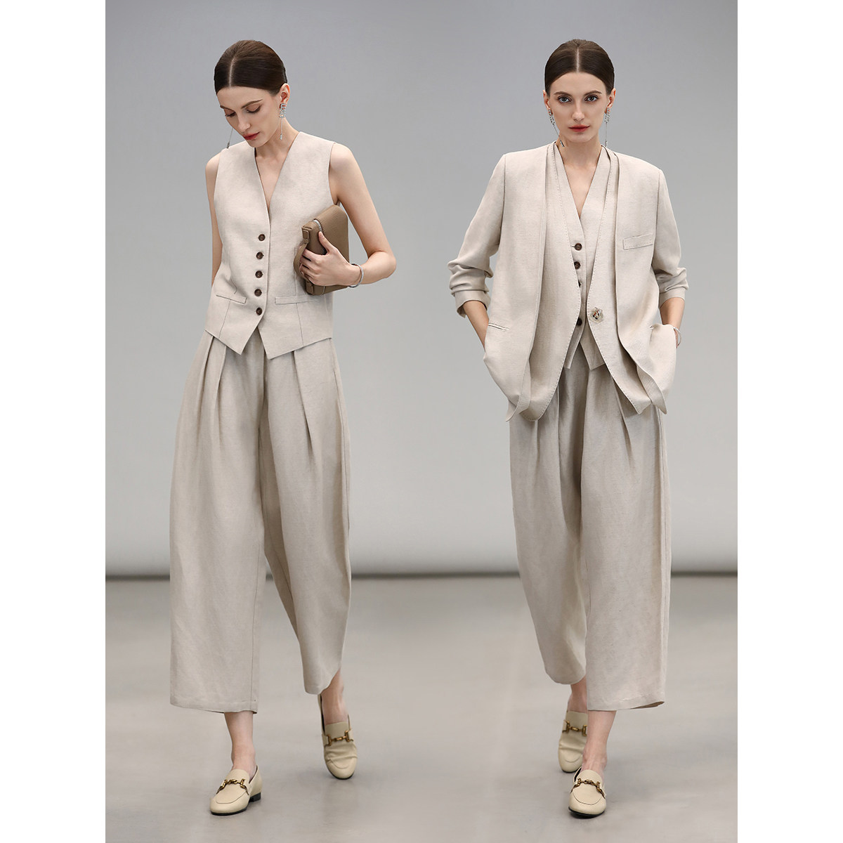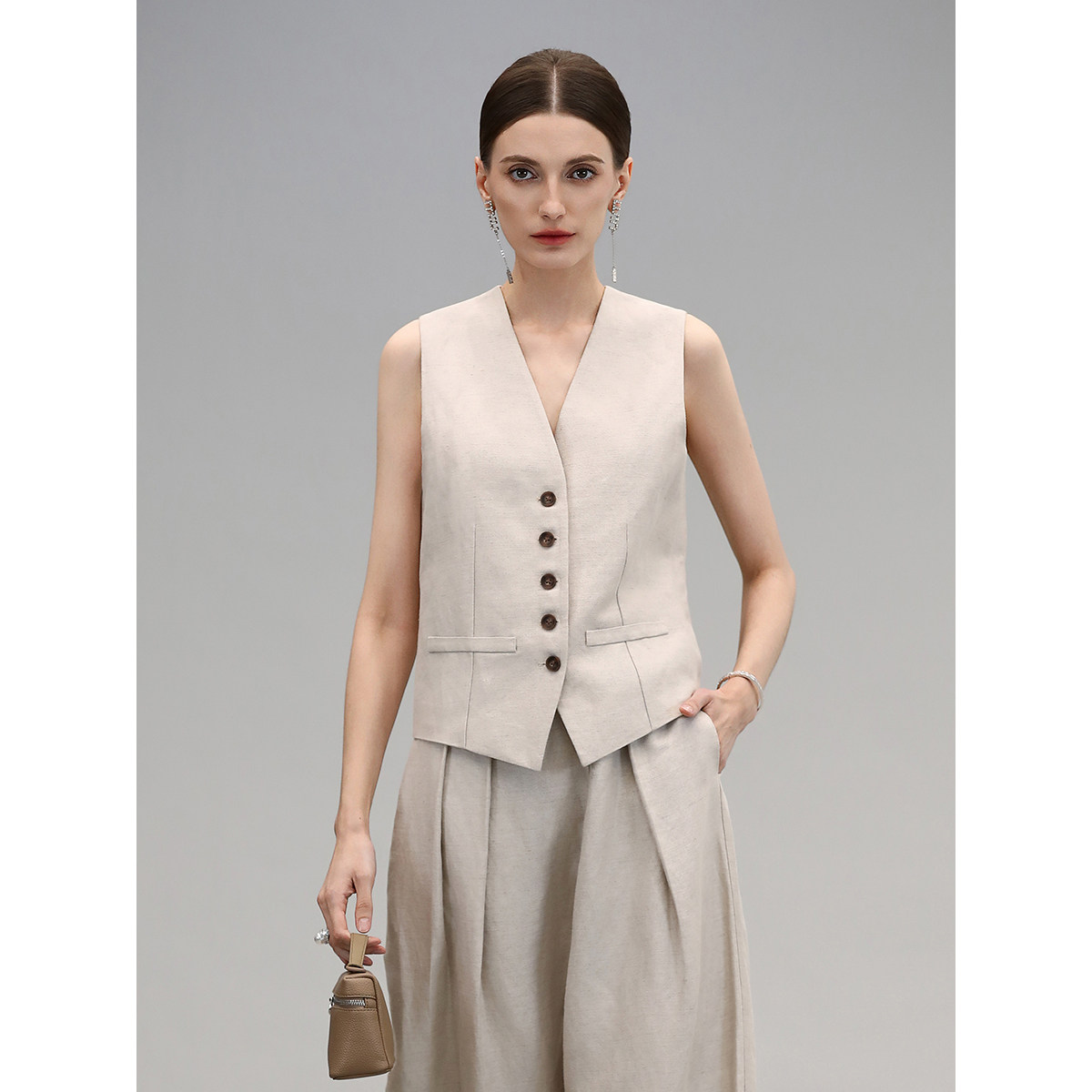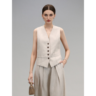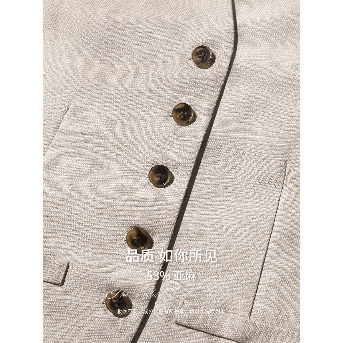 COCOBELLA高智感凉爽亚麻无领西装 风马夹女气质通勤马甲WS0006