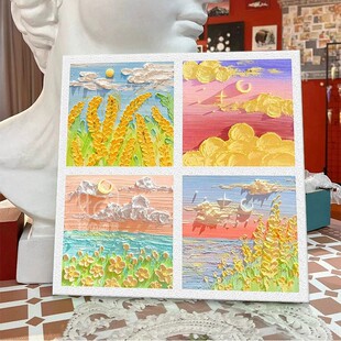 月亮玫瑰花卉石英砂肌理画diy材料全套填色手工绘数字油画高级感