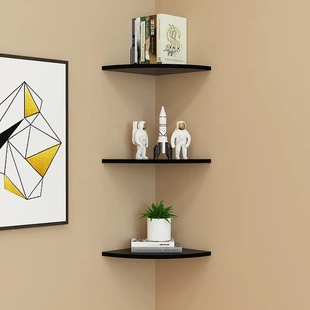 创意三角扇形隔板墙角置物架北欧简约实木转角置物板墙上花架书架