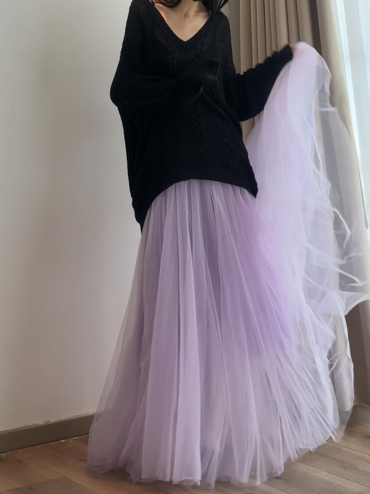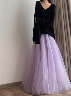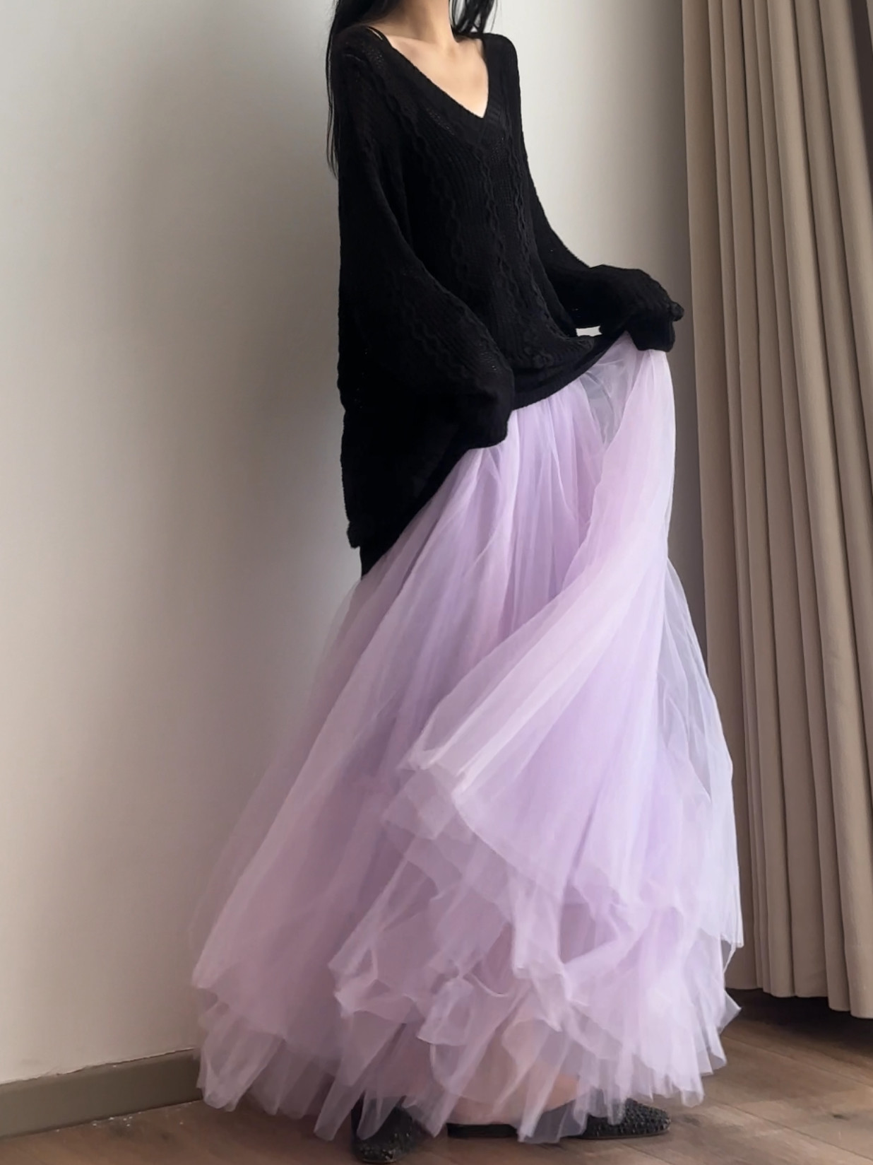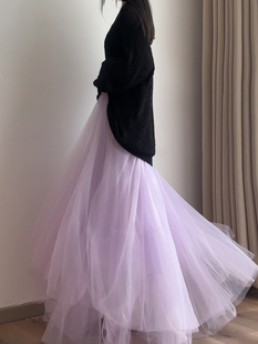读衣术丁香紫超仙网纱半身裙 蓬松感柔软仙女裙子 不规则温柔纱裙