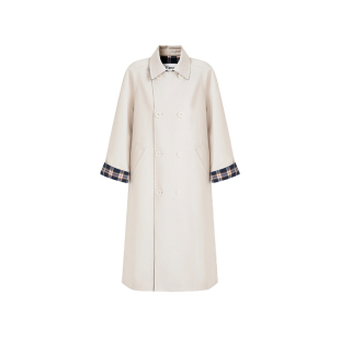 2026新款 风衣外套女中长款 简约北欧风撞色格纹拼接长款 范洛Fano