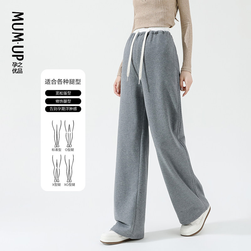 孕妇阔腿裤 百搭撞色腰长裤 春秋外穿2025新款 孕之优品无托腹孕妇裤