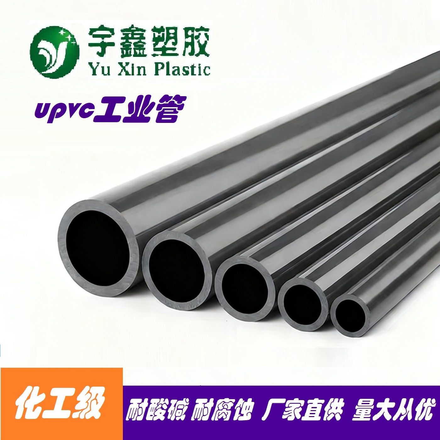 UPVC国标化工管子工业管道塑料灰黑色排水管件耐酸碱高温给水硬管