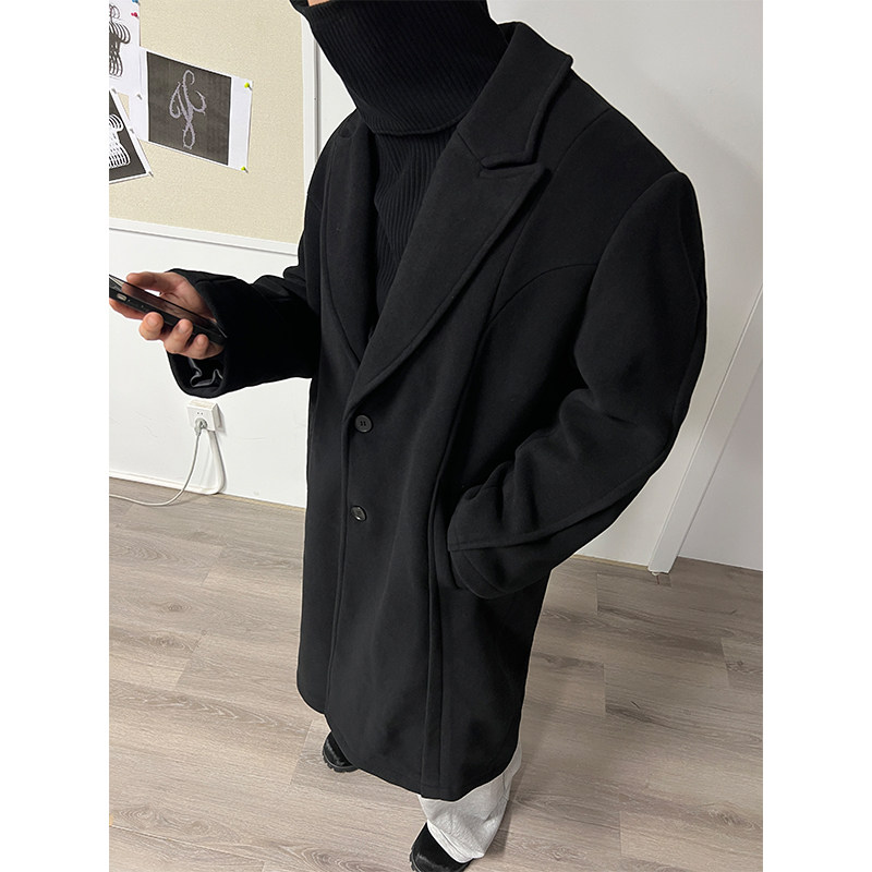 过膝无羊绒呢子风衣外套韩版 毛呢大衣男中长款 宽松落肩 新款 秋冬季