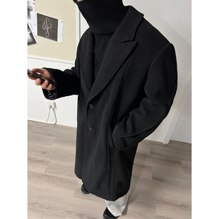 领双排扣呢子风衣外套加厚ins潮流 过膝西装 冬季 毛呢大衣男中长款