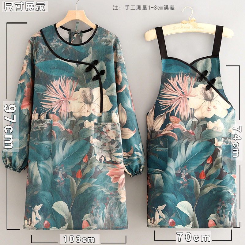 围裙薄外穿秋冬季 罩衣大人女新款 工作服加长家用厨房防水防油长袖