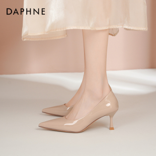 气质尖头细跟通勤浅口单鞋 达芙妮裸色高跟鞋 女鞋 春法式 女2026新款
