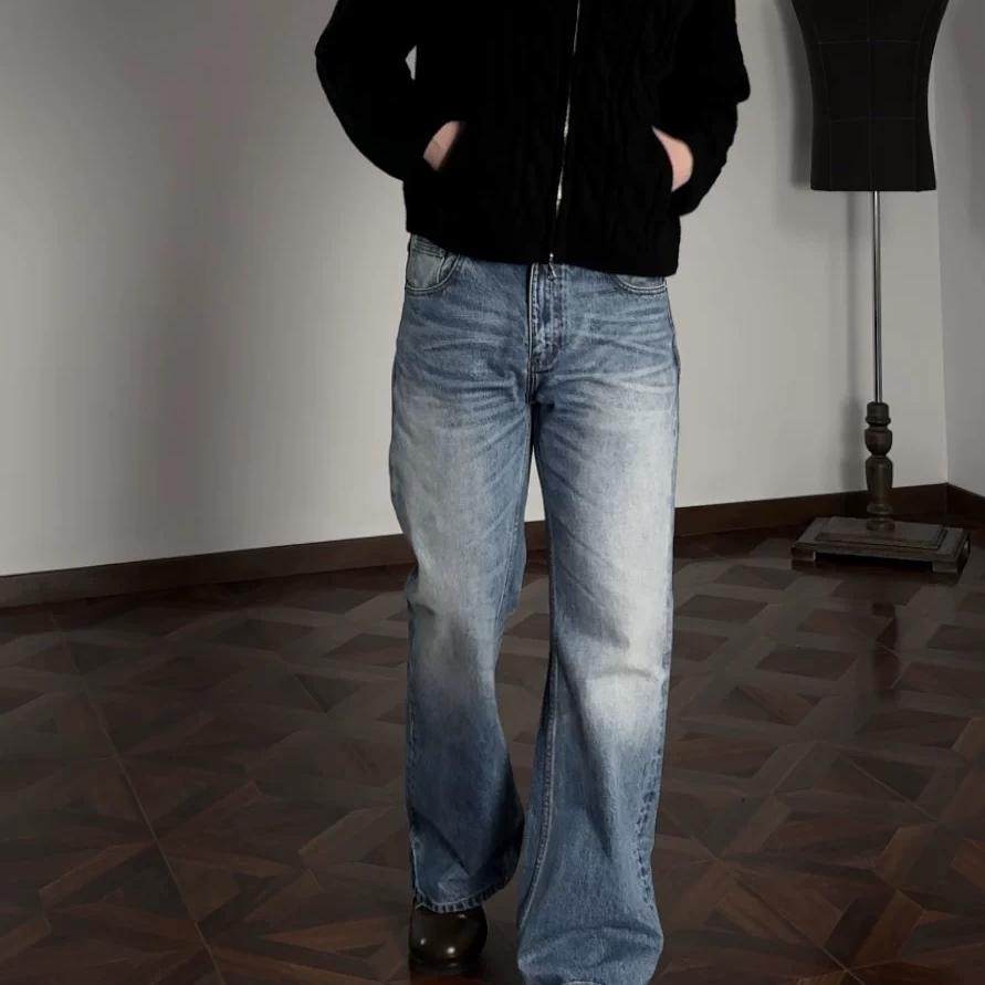 阔腿裤 百搭宽松显瘦休闲裤 子 男潮款 Cleanfit浅蓝色水洗直筒牛仔裤