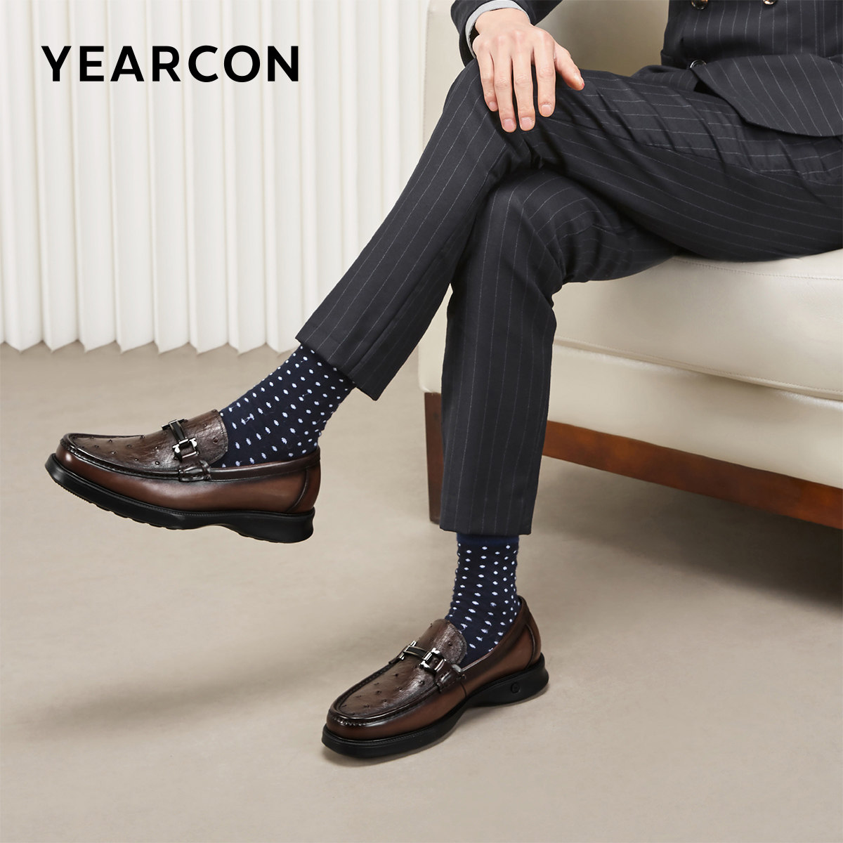 春秋季 男式 真皮低帮商务休闲高端皮鞋 英伦风乐福鞋 男士 意尔康男鞋