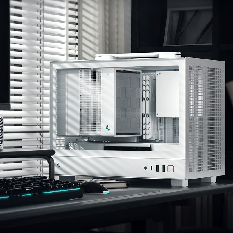 鑫谷机箱卓灵1白色玻璃侧透电脑机箱台式 机迷你mini小机箱matx