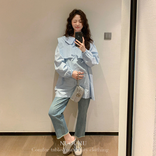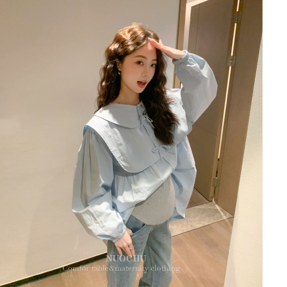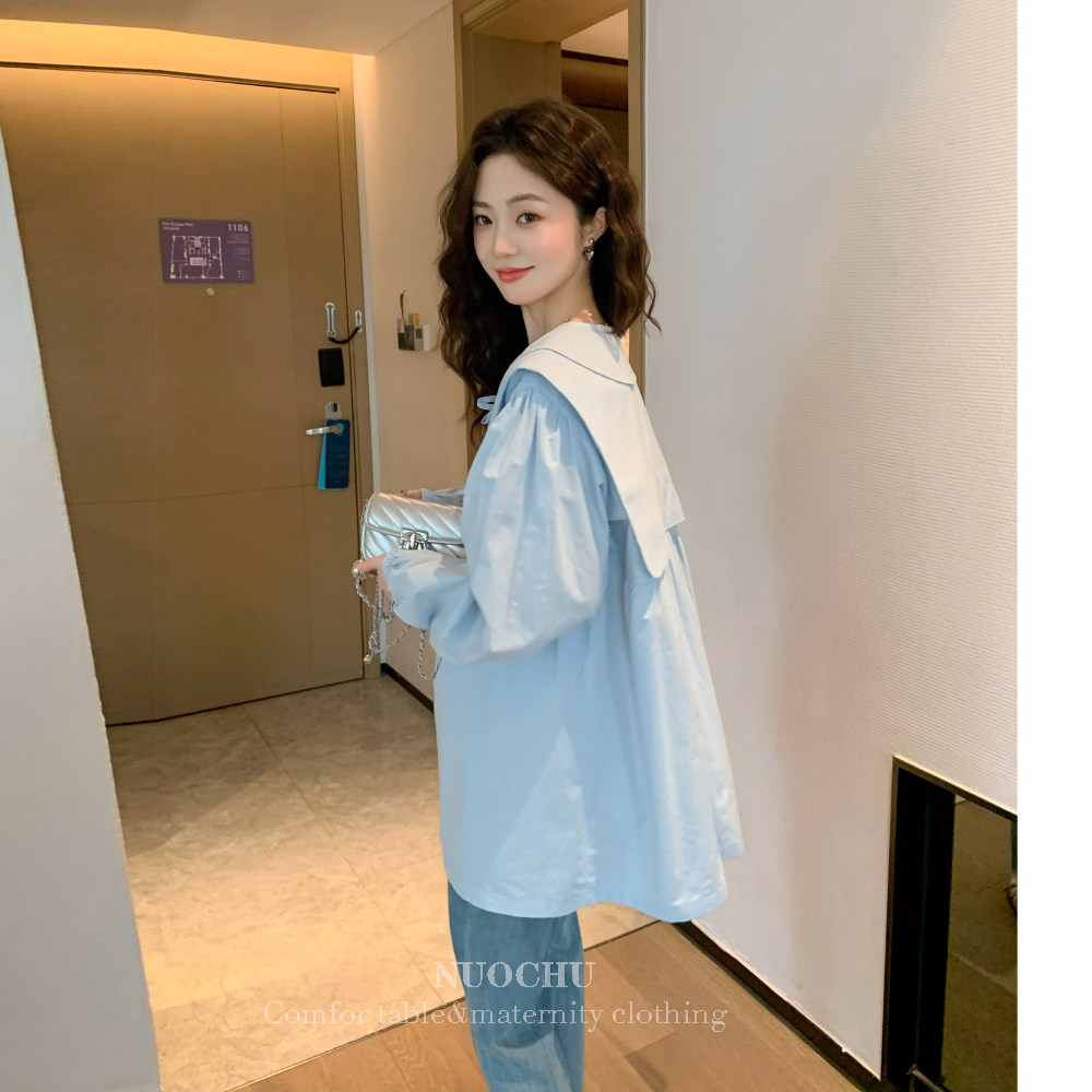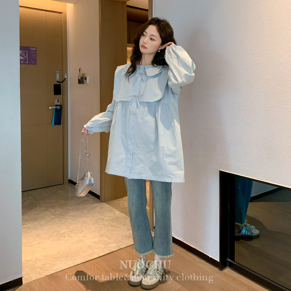 诺初孕妇装 衬衫 春季 洋气休闲中长款 学院风娃娃领上衣 2025新款