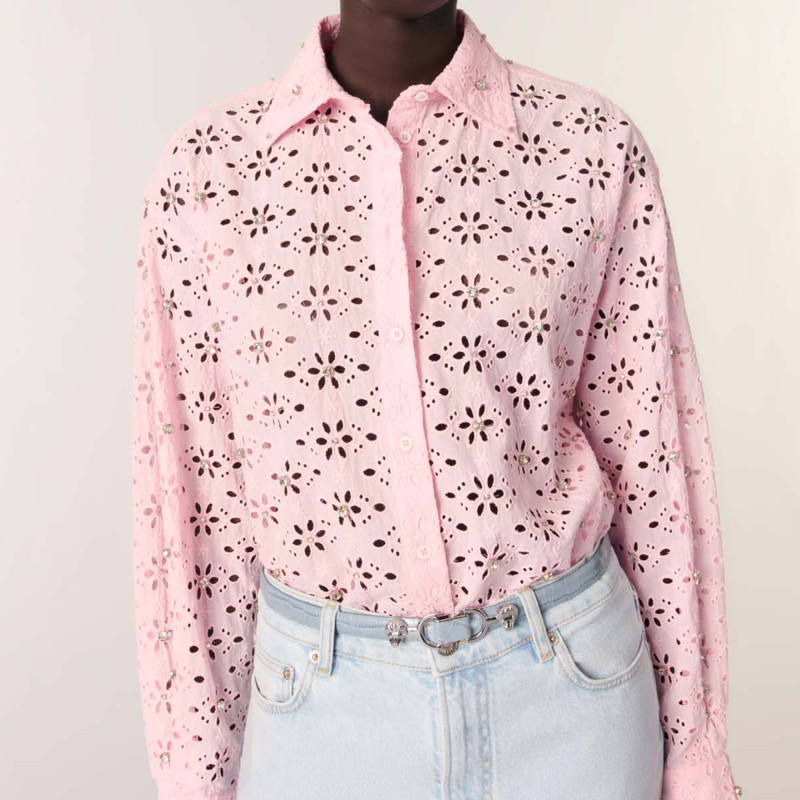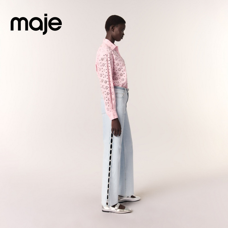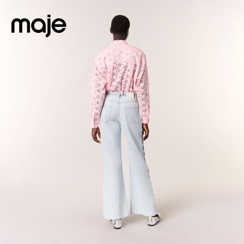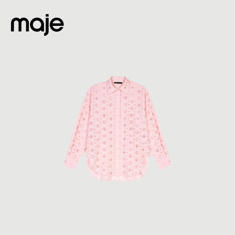 法式 衬衫 时尚 饰刺绣花朵镂空设计翻领长袖 仿钻装 Maje2025春夏女装